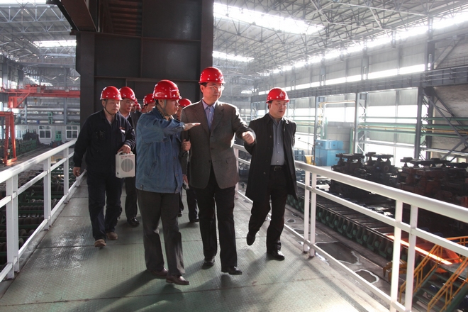 4月9日,市長王世偉到公司調(diào)研,公司總經(jīng)理張鐵漢陪同到120萬噸H型鋼生產(chǎn)線參觀,并向王市長介紹公司生產(chǎn)情況。